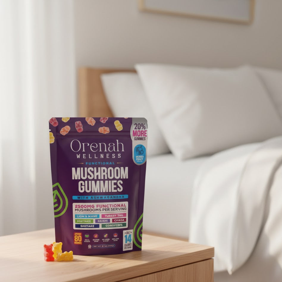 A calming, melatonin-free blend of adaptogens and mushrooms designed to quiet stress, support your natural sleep cycle, and help you stay asleep through the night.